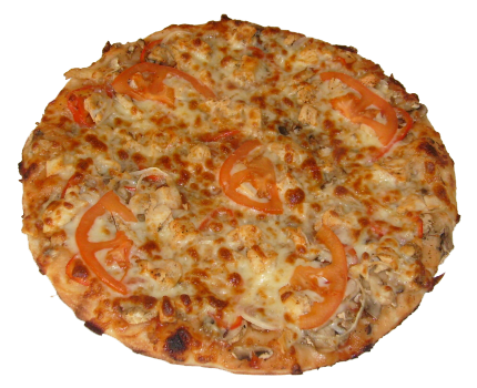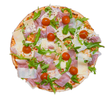 Sos rosii, salam picant, sunca, ciuperci, ardei iute, rosii, mozzarela
