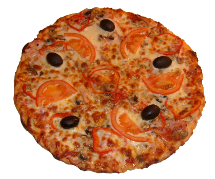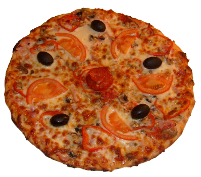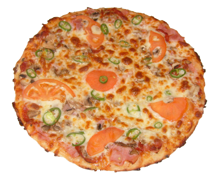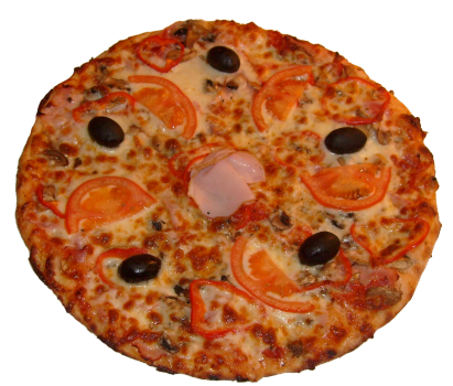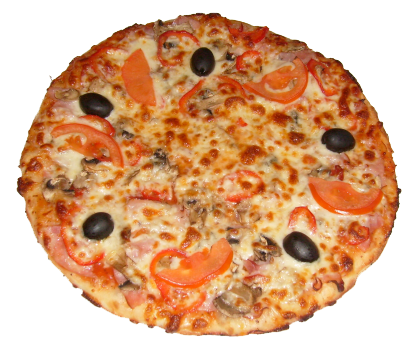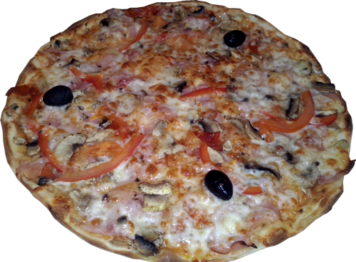 sos rosii, mozzarela, sunca, jambon, salam, masline, rosii, ciuperci, ardei gras